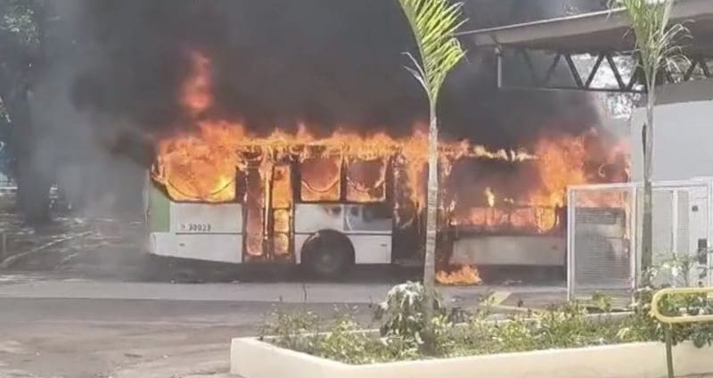 Ônibus pega fogo no Terminal Padre Pelágio, em Goiânia